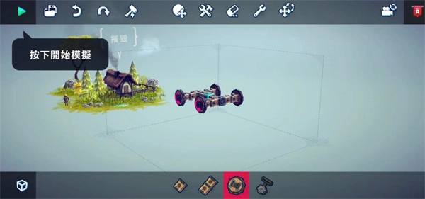 2、进入关卡后玩家需要建造自己的器械来摧毁目标,可以使用的配件会在下方显示。