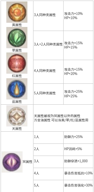 克制属性攻击可提升25%的伤害。编队效果