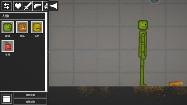 1、进入甜瓜游乐场游戏界面,将武器拖动到角色下方。
