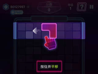 1、按住并平移,松手即可令俄罗斯方块下落;
