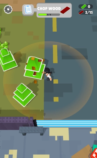 2、接着根据任务的提示去砍伐树木获取资源