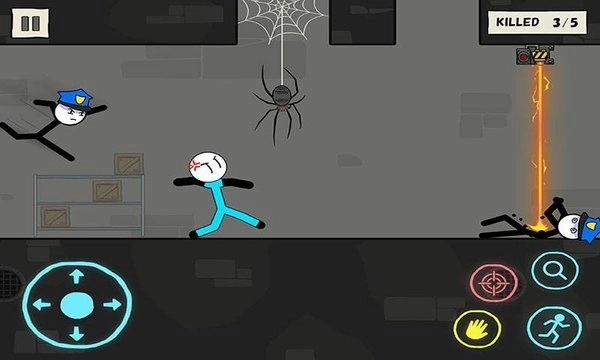 1、游戏中玩家需啊哟操控着不同的火柴人角色在不冉的场景内消灭敌人完成闯关,火柴人有着丰富的技能可以使用,还可以利用场景内的各种机关陷阱来消灭敌人。