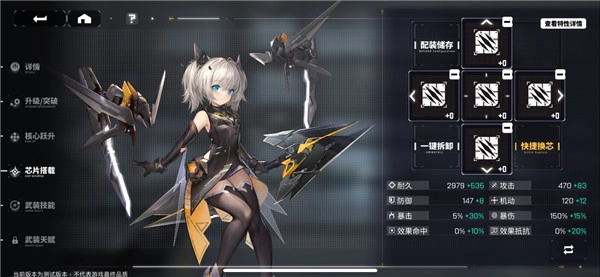 养成玩法:采用了等级+装备+技能的养成路线设计。每名角色都能通过升级提升面板属性;通过强化技能提升实战能力;通过安装合适装备芯片针对性地强化某一方面的战斗力。