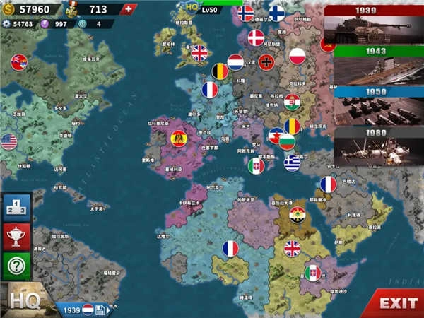 那么有的人会问了,既然每个国家都有自己独特的实力,那么怎么样才可以消灭比自己实力强的国家呢?这时候就要退出政府界面,进入响当当的HQ(指挥所界面)!