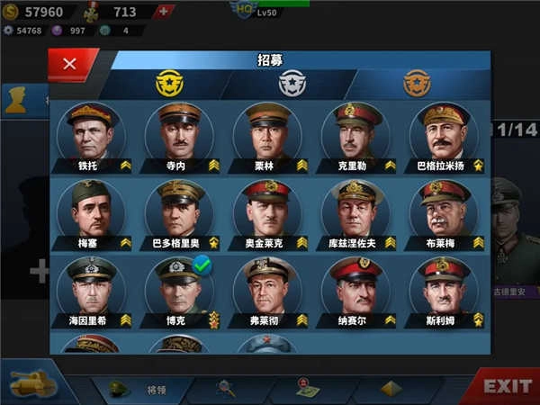 在指挥所,你可以查看 雇佣 解雇 各种将领。