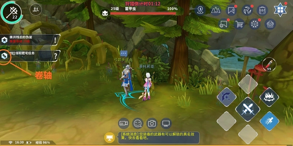 第一次卡级会出现在22级这里。点击这个卷轴图标会发现几个支线任务同样点点点完成