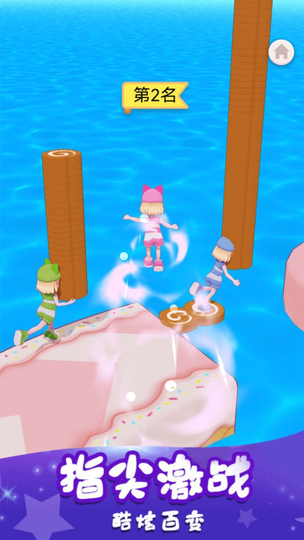 4、活泼可爱的女孩,冲向终点线,终极挑战带来了很多欢乐。