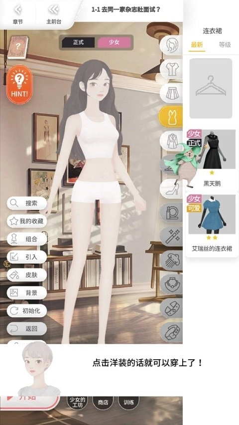 1、开局沉浸式的剧情,将详细介绍角色以及工作的方向,结束完剧情后,跟随引导完成前期的换装教学。
