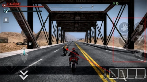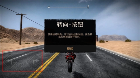 4、接下来是加速和倒车按钮,同样在游戏的左下角,玩家在游戏中够可以随时控制摩托车进行加速或者倒车。