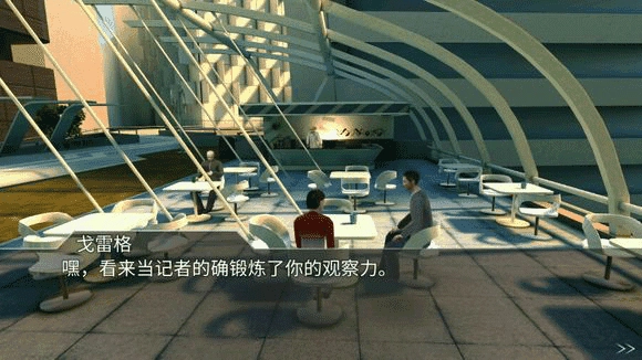 1、游戏开场,我们跟随主角因咖啡邀约来到高架桥公园。在这里,我们初步了解到男女主角的身份背景:女主是一名记者,男主则是工程师。而游戏从这里就已埋下伏笔——从画面可知,戈雷格正在研发一台3D打印机项目,理论上这台机器能打印任何物体,换言之,就连回声装置也能通过它打印出来!