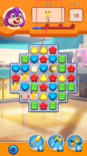 2、查看目标:在目标步数22合合界面查看所需合成的糖果数量。