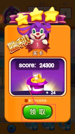 4、领取奖励:在关卡score24300+24界面点击双倍奖励领取后进入下一关。