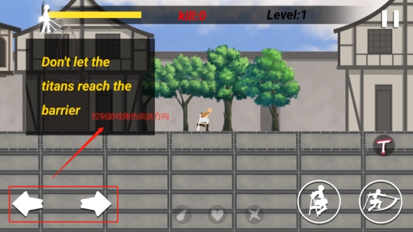 2、通过图示的左右箭头操控人物角色移动