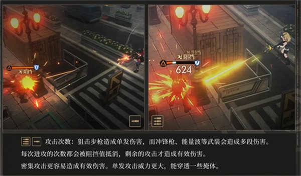 不同的武器会产生不同的攻击方式:例如,狙击步枪进行单发精准攻击,而冲锋枪、能量波等武器则能够连续释放多次攻击。在战斗中,攻击次数直接影响到战斗的结果。每次攻击的伤害都会受到敌人掩体的阻挡值影响,只有穿透或击中掩体漏洞后的攻击才算有效。因此,密集的连续攻击能够增加有效伤害的概率,而单发攻击则能突破部分薄弱的掩体,造成更大的打击。