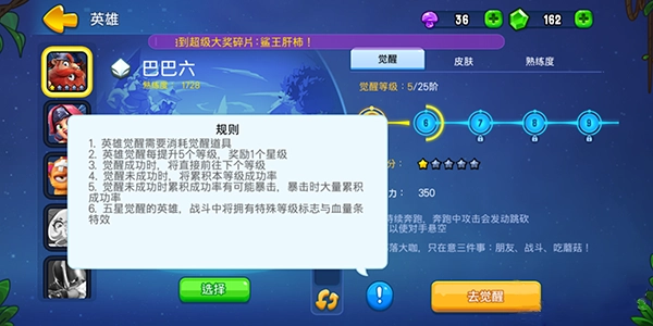 英雄在觉醒后可获得全属性加成,需要消耗觉醒道具,且五星觉醒的英雄在战斗中将拥有特殊血量特效和等级标识。觉醒成功的英雄将直接前往下个星级,未成功则会累积幸运值。