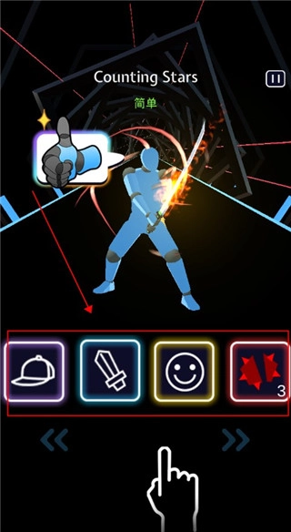 《节奏大宝剑》的界面设计精致细腻,在关卡推进过程中,背景会跟随音乐的律动切换色彩,为玩家带来出色的视觉享受。每当击打音符时,设备会产生震动反馈,操作手感流畅舒适,非常适合用来释放压力。此外,各关卡的配乐各不相同,越往后的关卡不仅难度逐步提升,音乐的节奏感也愈发强烈。