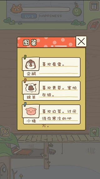 1、第一关是你成为动物安排员的入门关卡,你要按照指引去了解动物的喜好。