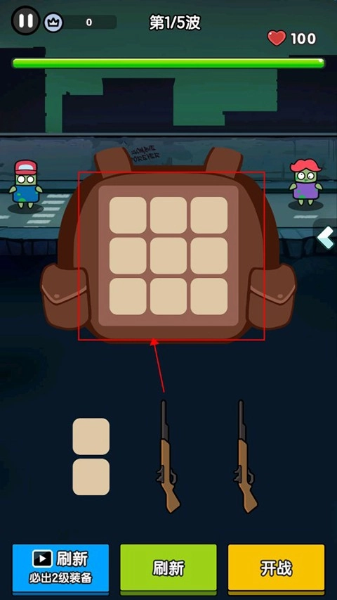 2.玩家在关卡每波开始前都可以选择装备放入背包,只要背包放的下,就可以全选。