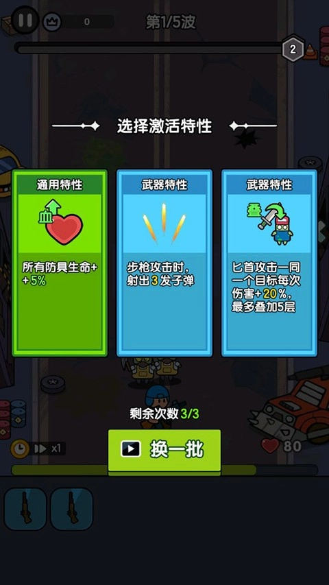 5.上方经验条满后可以升级,进行技能特性的选择,玩家可以按照携带的武器进行选择。