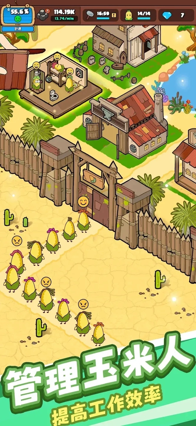 资源管理:合理分配资源,建造防御设施,种植庄稼,采集资源,打造一个繁荣昌盛的玉米人村落。