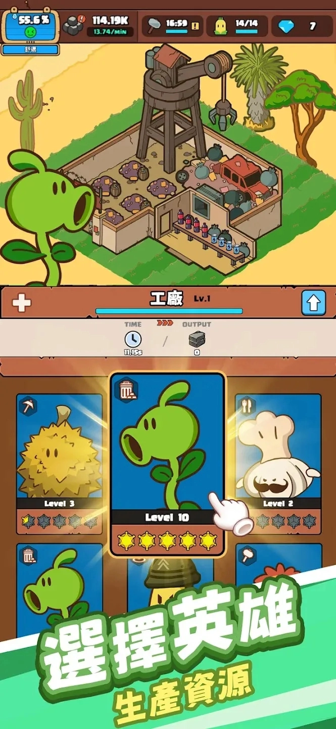 2、招募植物战士,组建专属军队:这里有各式各样独具特色的植物战士,它们各自具备强劲的攻击、防御或是辅助能力,快来打造专属于你的最强植物军团吧!