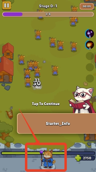 4、穿过猫巫师脑袋的绿条条是猫咪城堡的血量。