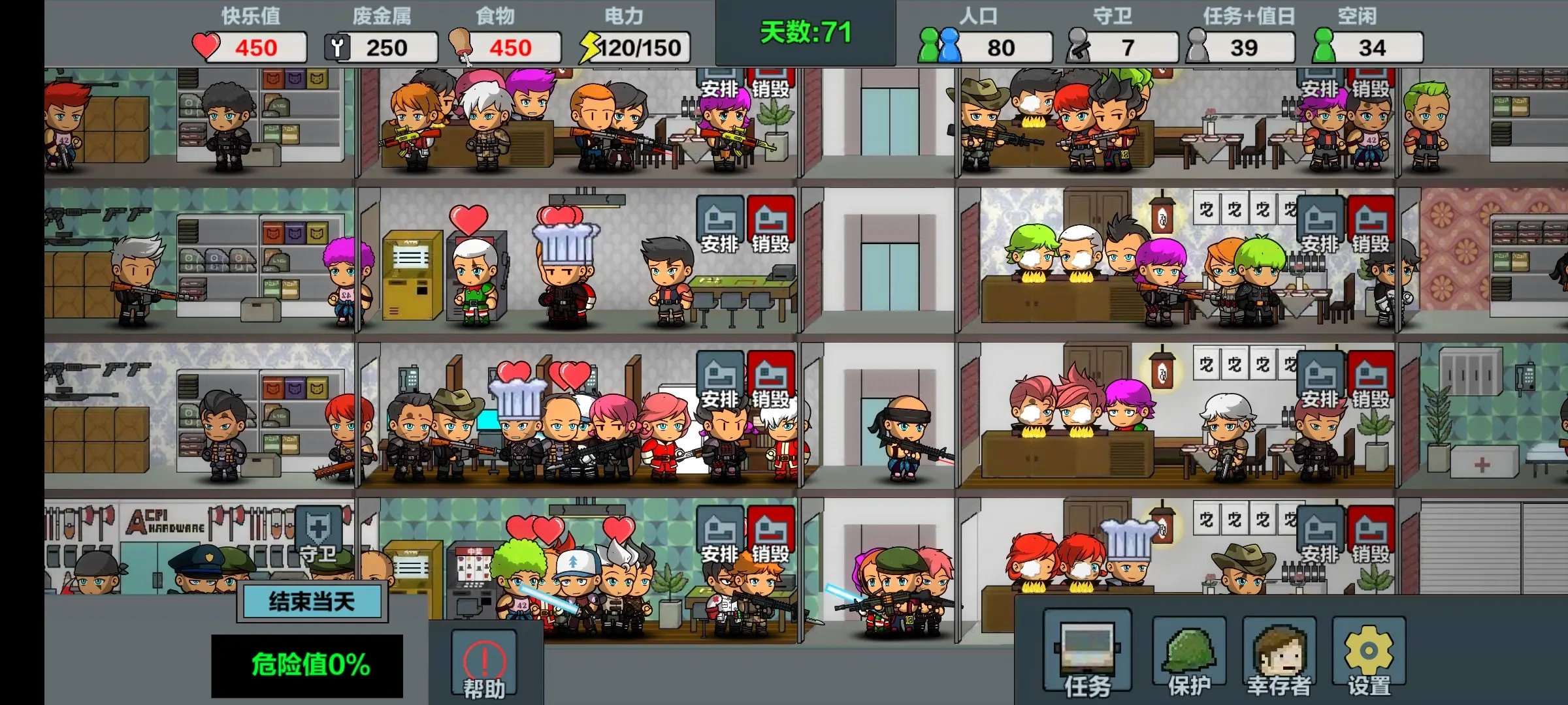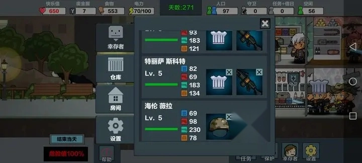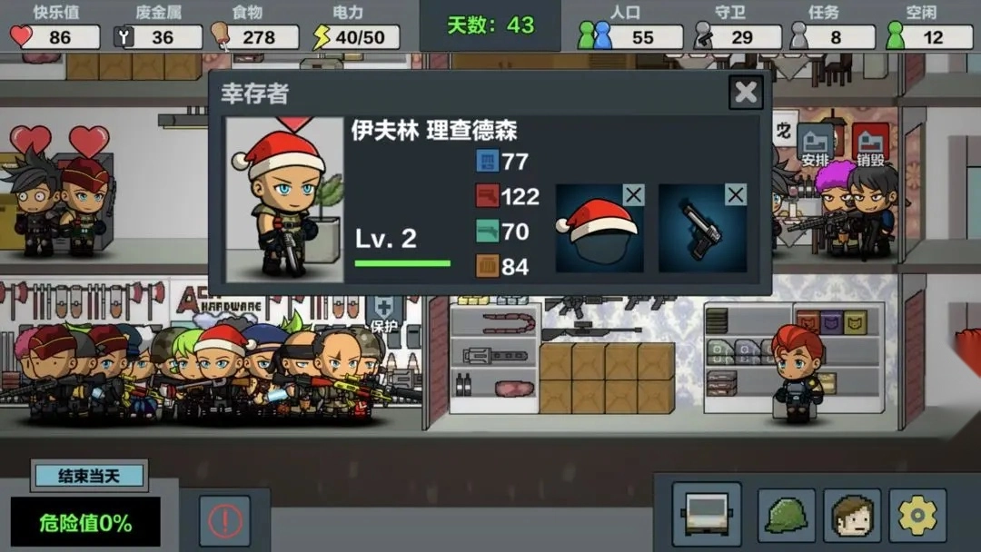 3、武器种类丰富,玩家可以为幸存者们配置强力的装备。