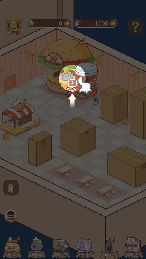 商品研发:玩家可以通过“研发”进行合成,获取更高等级的商品以满足不同客人需求。