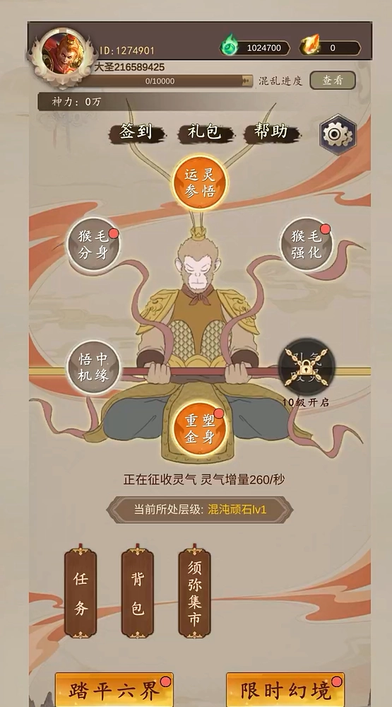4.金身重塑:通过完成各类任务和挑战,搜集资源,提升大圣本体等级。每个修炼阶段都充满挑战与机遇,玩家将体验到逐步强大的过程。