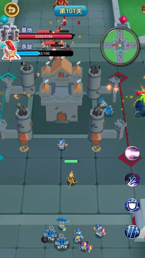 4.资源管理:在战斗中收集金币和宝石,用于升级英雄和强化炮塔。
