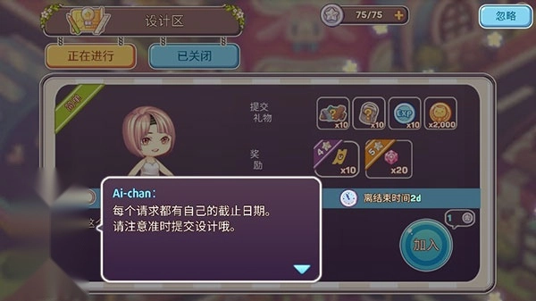 3、每个设计请求都有时间限制,玩家需要及时完成订单请求。