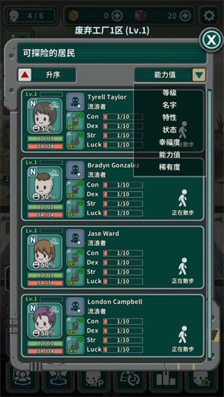 4.可以选择需要探险的居民,根据他们的能力值陪伴你一同探险。