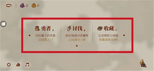 打开《勇者闯魔城》后,界面上设有勇者、讨伐、收藏三个栏目。