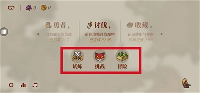 3、选择“讨伐”进入试炼、挑战或冒险模式。