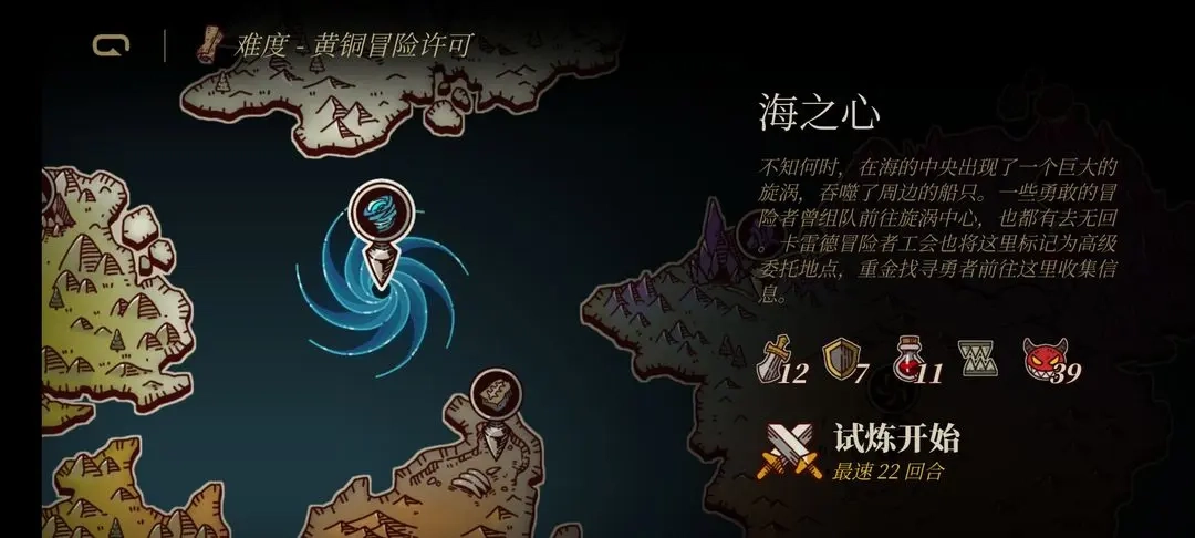 4、在“试炼”中查看地图并开始挑战,挑战魔王城或进入小型战斗。