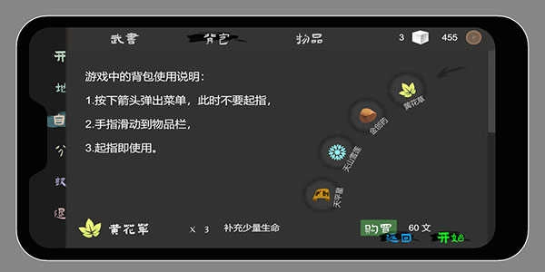7、背包当有物品时才能打开,有个灰色的箭头,滑指使用,第一次使用时可能会有点别扭,但速度是相当快的。