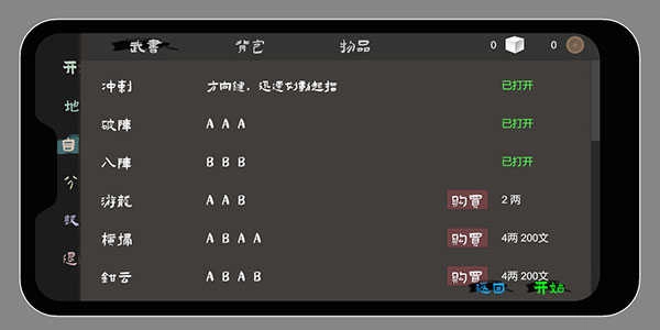 1、在主菜单中打开自定义,可以找到技能的设置面板,银钱需要在战斗中获取。