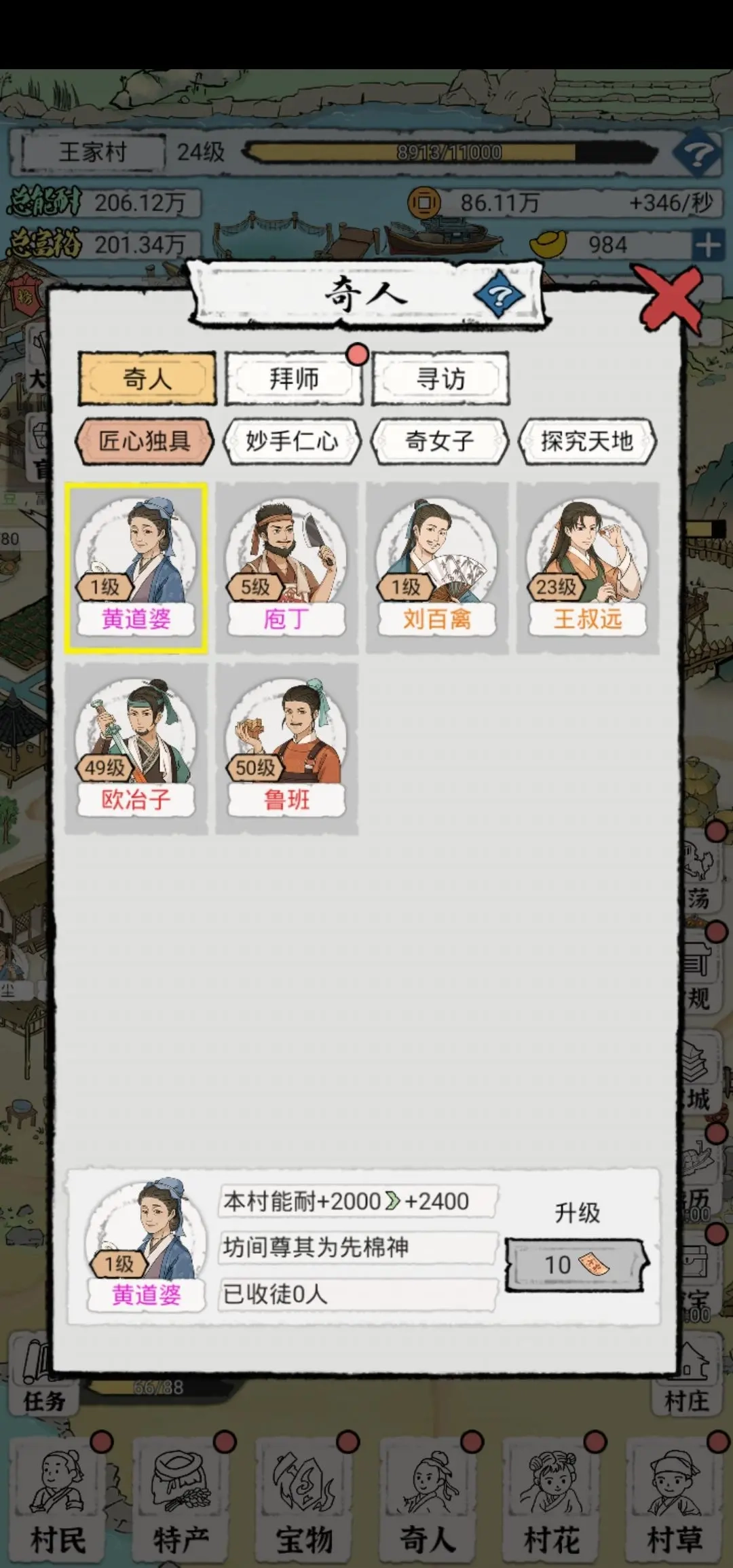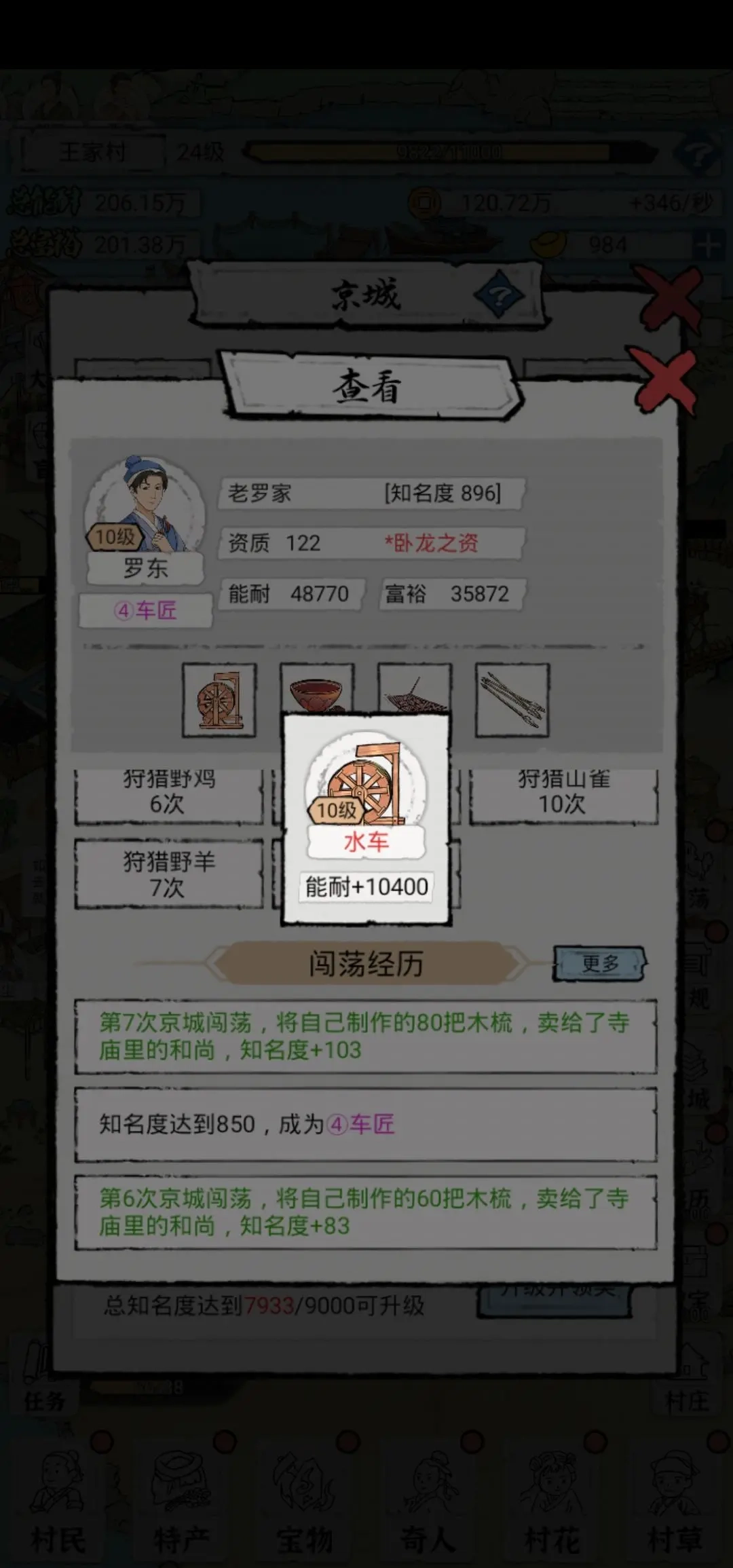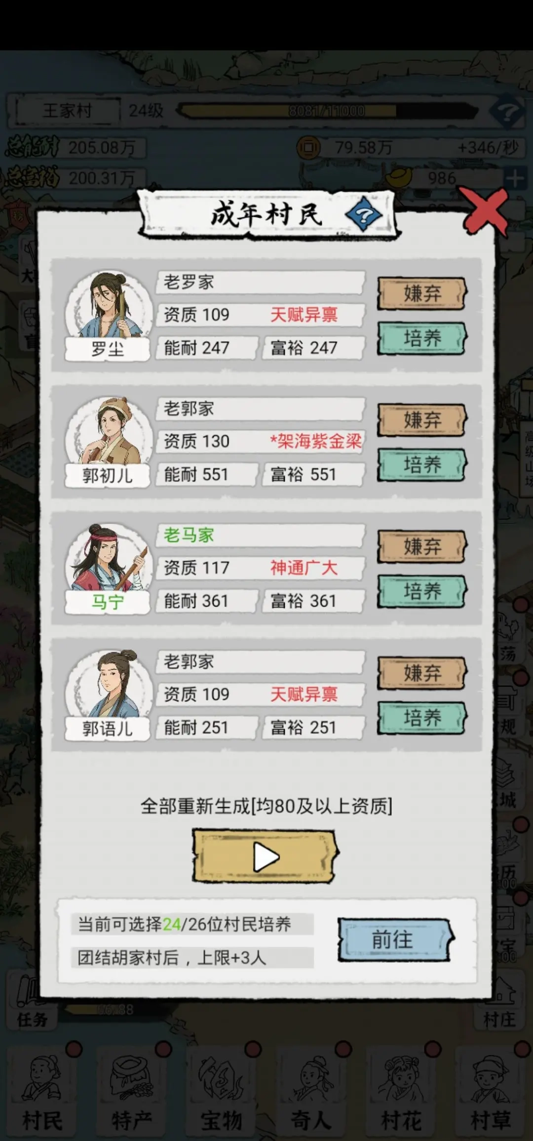 一、开局挑选村民时,优先选择资质最高的进行重点培养
