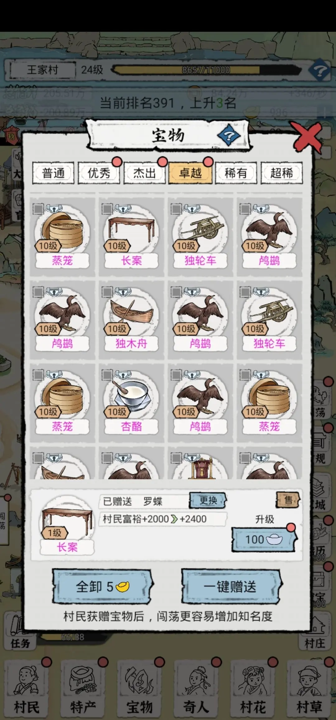 五、进京宝物卸不卸都可以,不卸的话就会上供会加一些永久属性,卸了的话就没有属性加成,但是宝物可以一直留着会涨价。