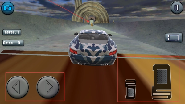 3、在赛道上通过屏幕左下角的左右方向按钮控制赛车转向,利用屏幕右侧的换挡和油门刹车控制区域来调节赛车的速度和档位,还有金币可以收取。