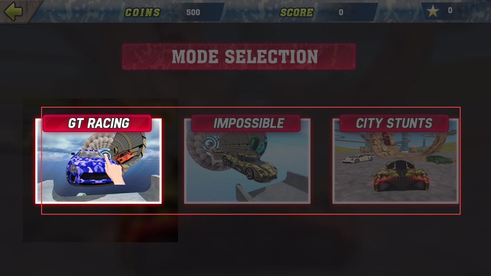 2、进入游戏后会出现模式选择界面,可选择GT RACINGGT赛车模式、IMPOSSIBLE极限赛道模式等,不同模式下赛道和挑战有所不同。