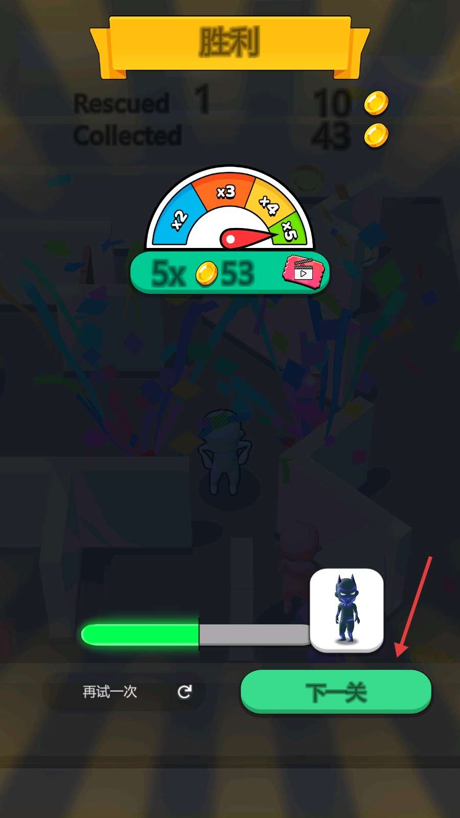 4、成功完成关卡任务后,屏幕显示胜利,我们可以点击【下一关】,开启新的捉迷藏冒险。