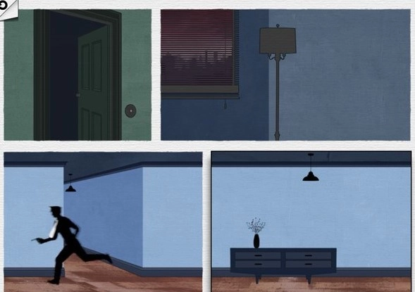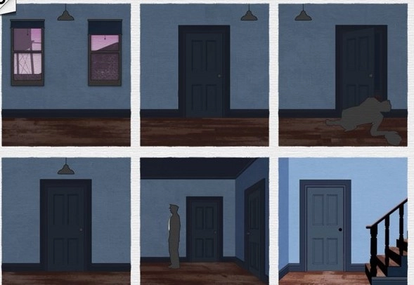第四场景:调换图片,使主人公跳窗逃走,避开警察射击。