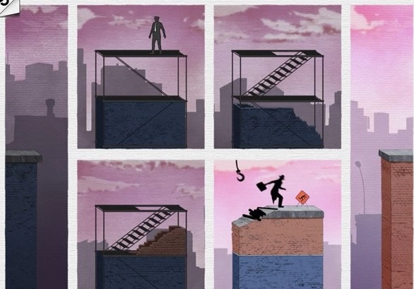 第六场景:调整图片顺序,避免主人公踩到碎砖块摔下楼。