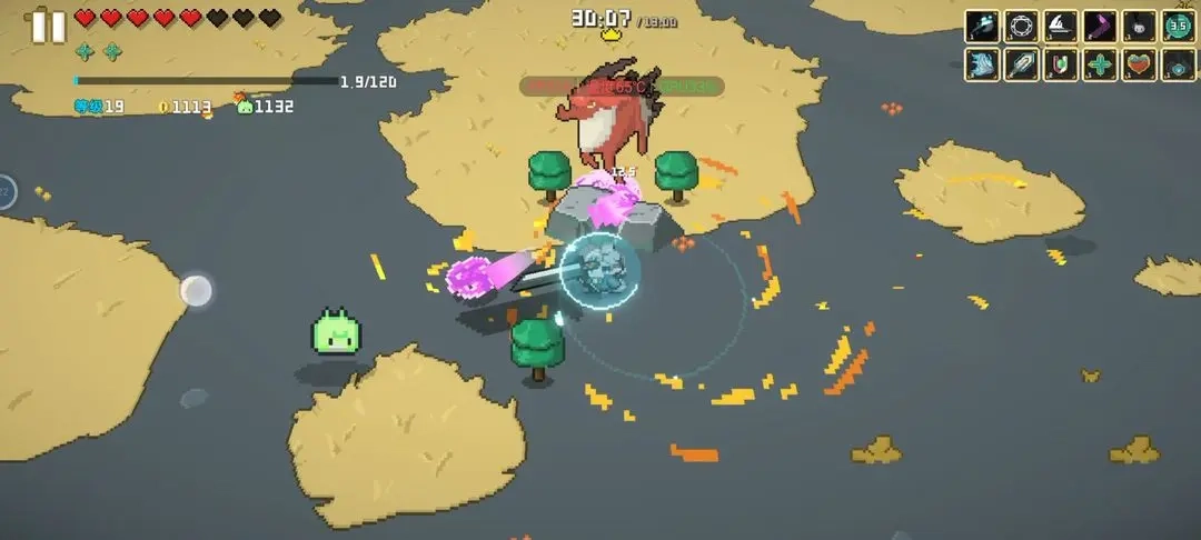 最难熬的时候是石头怪出现的时候,同时出来的BOSS都很难处理,一个带突进(这个要注意走位,比如往左或右下靠一下),一个移动速度很快(路上碰到石头可以卡一下位置)