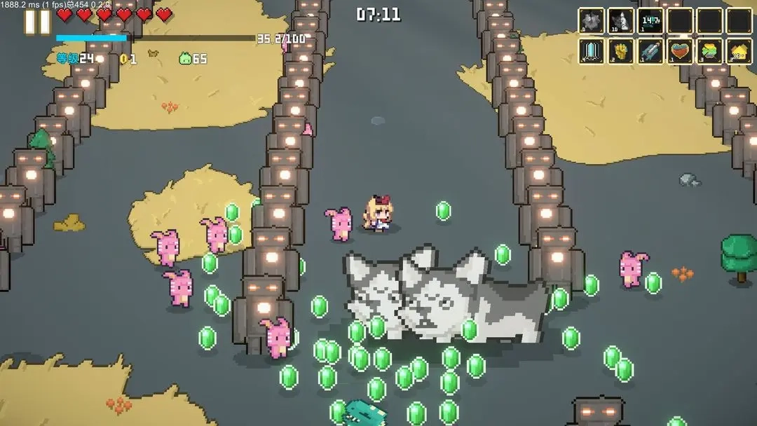 《兽潮来袭》是一款兼具像素风割草射击与经典Roguelike闯关玩法的游戏。在这个遍布怪兽的危险世界里,唯有强大的勇者方能存活。游戏提供了多个勇者角色供玩家挑选,每个角色都拥有别具一格的玩法机制。