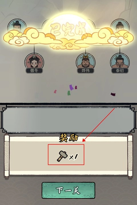 5.所有圆框正确填入就可以通关并获得锤子奖励啦。
