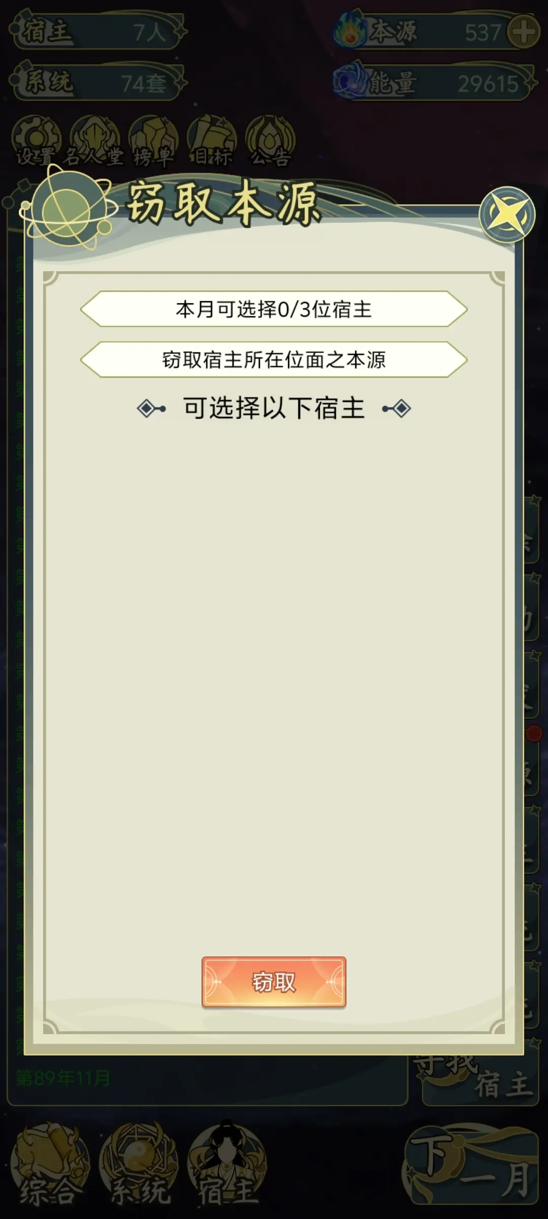 3、独特的宿主玩法,你可以挑选各个位面世界的强者来夺舍。