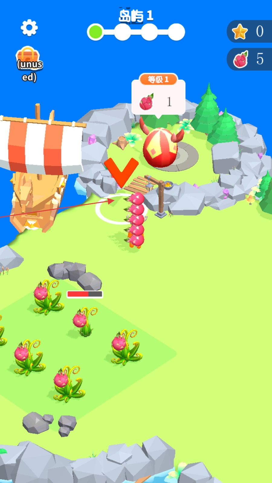 3、按指引将果实送往指定交付点,完成岛屿1任务目标。