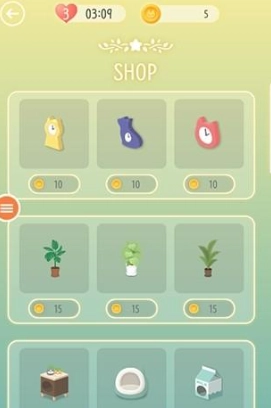 提供了40多种不同的家具和装饰品,玩家可以用赚取的金币购买这些物品,自由搭配,打造出一个独一无二的猫屋。